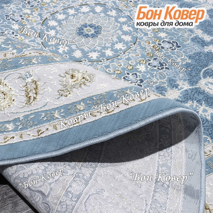 Красивый Ковер Для гостиной дизайн 184 Турция Голубой Овал NN наполняет интерьер гостиной теплом и уютом, гармонично сочетает в себе изящество и стиль. Он создан из экологически чистого сырья, комфортный и долговечный.