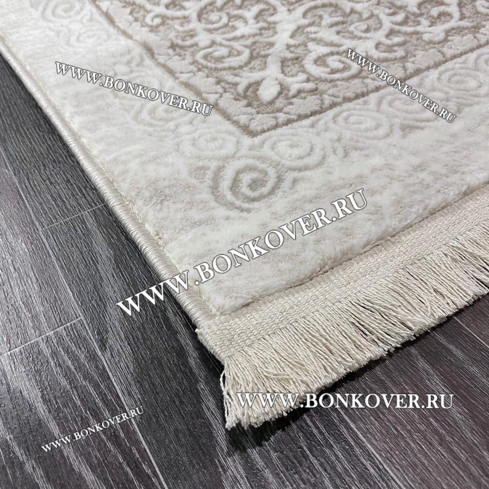 Красивый Ковер Коротковорсный Лайт Дизайн 05 Белый с Бежевым наполняет интерьер комнаты теплом и уютом, гармонично сочетает в себе изящество и стиль. Он соткан из высококачественного сырья, комфортный и долговечный.